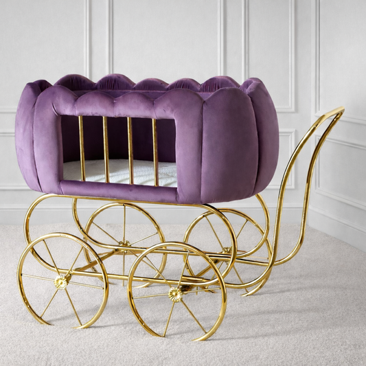 Luxury Baby Crib With Gold Wheels - Lilac
