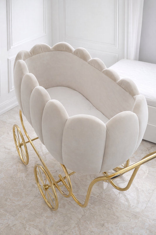 Luxury Baby Crib With Gold Wheels - Beige