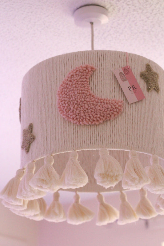 NEW MOON LAMPSHADE decorated with pink moons and gold stars