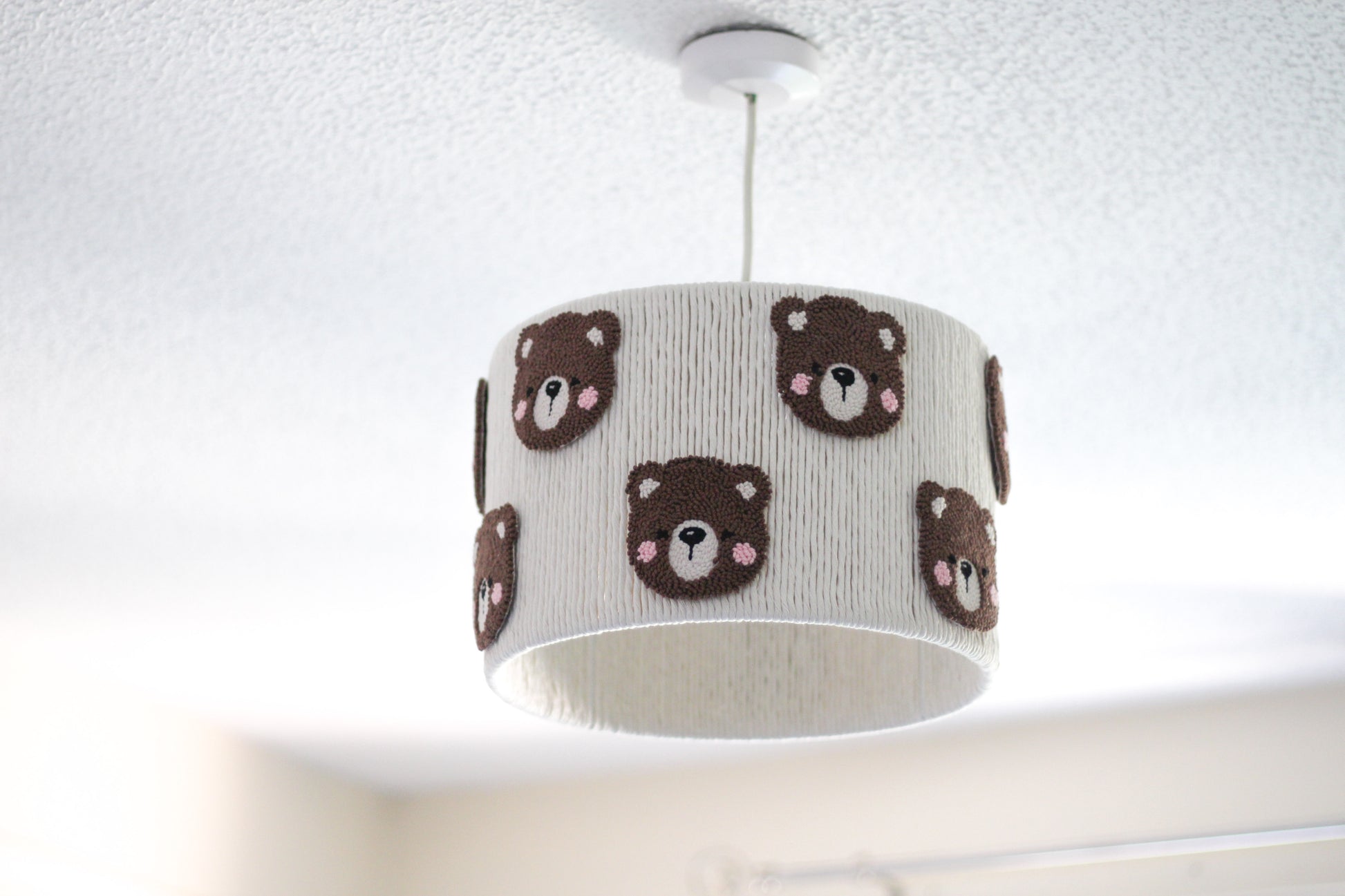 This Bohemian and stylish look lampshade is handwoven with a macrame decorated with teddy bears.