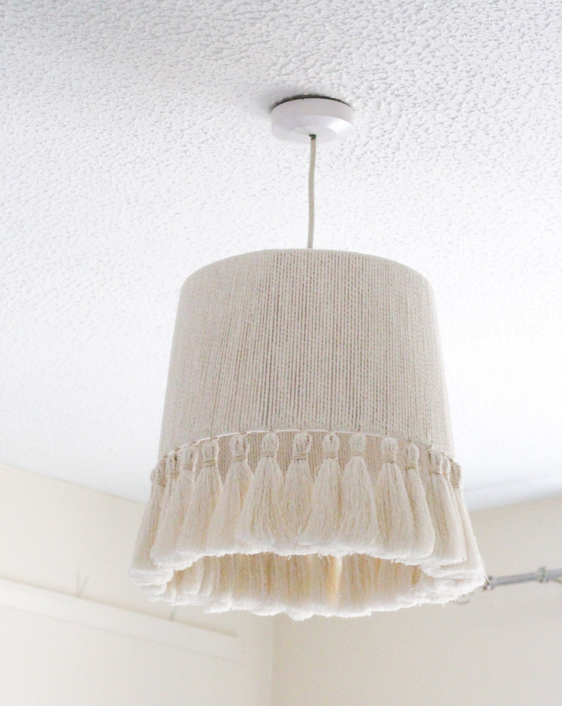 This Bohemian and stylish look lampshade is handwoven with a macrame cord.