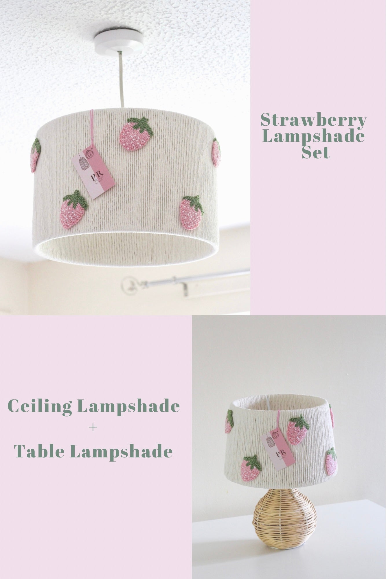 PINK STRAWBERRY SET: Pendant Lampshade and Table Lampshade